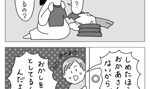 子育ていたずらしようと企んでるときの真剣な顔が好き 最近すっかりいたずらっ子です。 寝室でパジャマを畳んでいたら、 キッチンとつながるふすまをそ~っと閉じようとするこっちゃん。 気がついて 「なんで閉めるの?」 と声をかけると…