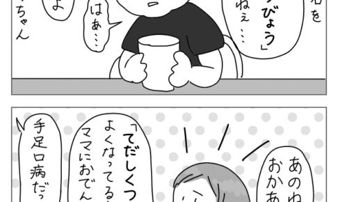 子育て今日もえいくんシリーズ。 私、えいくんも、えいくんのママも大好きで、 年中遊びに誘っちゃうので登場割合高めです^^ 夏の出来事ですが、 お出かけのお誘いをしていたのですが、 えいくんが手足口病にかかってしまい、 泣く泣く…